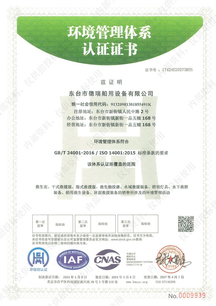 • 環境管理體系認證證書